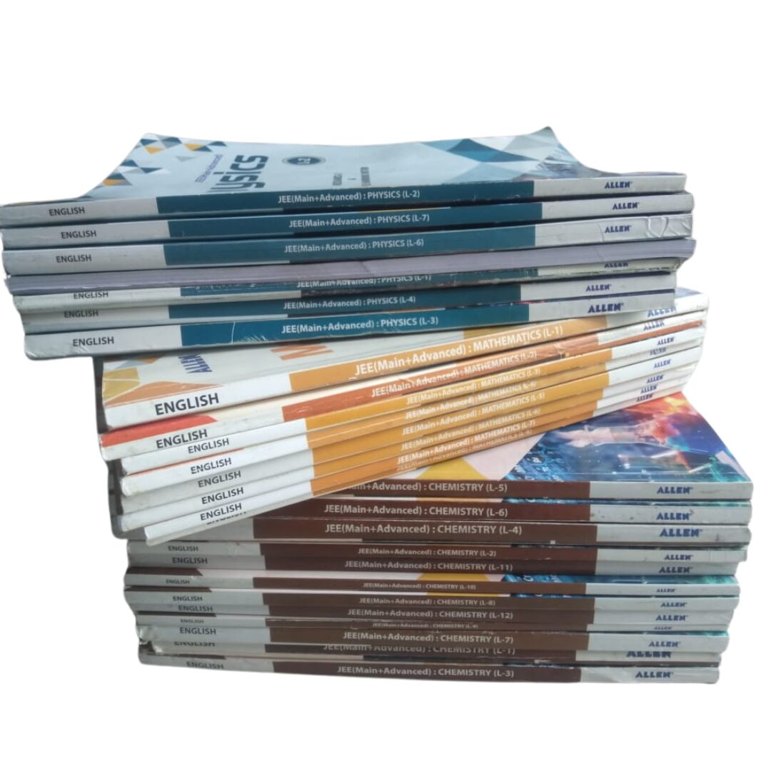 Get the ALLEN JEE Advanced Leader Course Study Material 2025 Edition (27 Books Complete Set) in used but excellent condition. This Kota classroom module set includes Physics, Chemistry & Mathematics, covering full JEE Main & Advanced syllabus with detailed theory, solved examples, and advanced-level practice—ideal for serious aspirants and droppers.